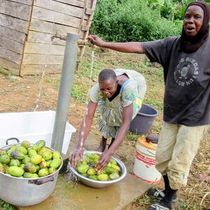 Der Boden im Dorf Log-ikwo ist von Natur aus fruchtbar und benötigt keine Düngemittel. Jede ausgesäte Saat bringt eine mehr als zufriedenstellende Ernte. Daher ist die Mangoernte zur Saison so reichlich, dass die Dorfbewohner sie nicht vollständig einbringen können. Die nicht geernteten Mangos verrotten in den Obstgärten und der umliegenden Landschaft. Um dieses Problem zu lösen, hat die Bauernvereinigung des Dorfes kürzlich eine mechanische Presse der Firma Rink aus Amstell bei Ravensburg angeschafft. Mit dieser Presse können die Bauern auf saubere und natürliche Weise ein köstliches Mangopüree herstellen, das bei Hotels und Restaurants sehr gefragt ist. Der Verkauf dieses Pürees ermöglicht es den 50 Bauern, ihr Einkommen zu steigern und ihre Lebensbedingungen zu verbessern.
